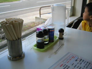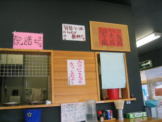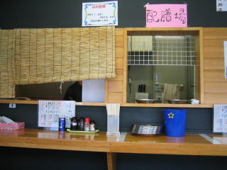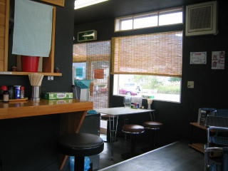 お店を入るとL字型で、玄関正面は厨房、国道側にテーブル席とカウンター席です。