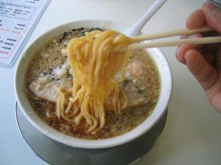 麺は太くコシもあり歯応えも充分、濃い醤油スープが良く絡みつきます。