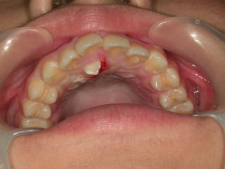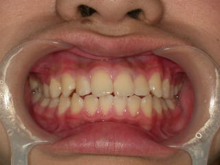 右上中切歯の内側にもう1本歯が出てきました。 正面像