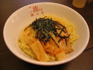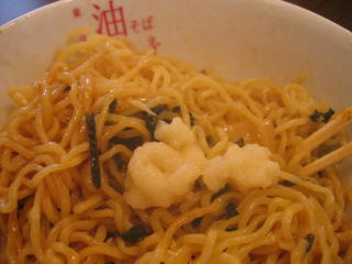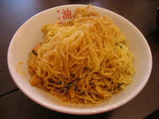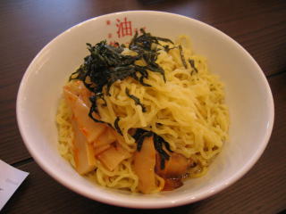 油そばの提供時間も早く、スープもなくて熱くないのですぐに食べ終わります。