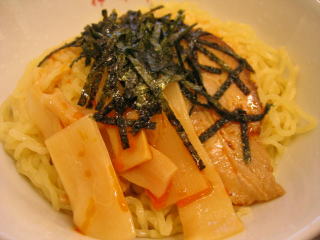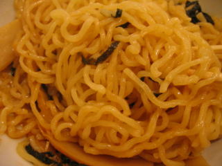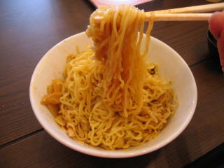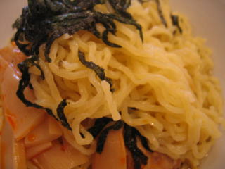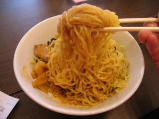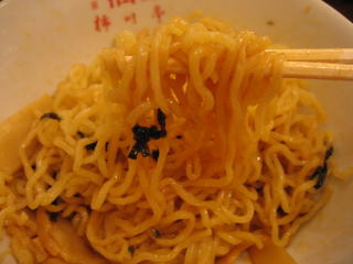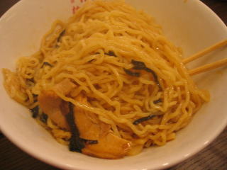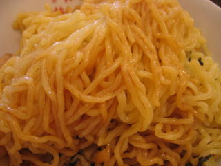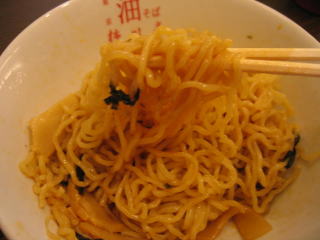さらにもう2周、やっと何とか麺が混ざる様になりました。麺は細めの白く透明感のある麺です。