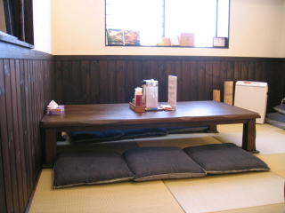 入口左に厨房とそれに沿ってカウンター席5席、奥の小上がり席は6人掛けテーブルが2席です。