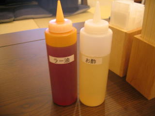 女性店員さんが「お酢とラー油をどんぶりに最低でも2周かけてから、いただいて下さい。」とのことです。