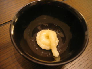 半分ほどたべて、味変でにんにくを混ぜ入れていただきます。