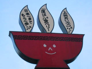 昨夜宿泊したホテルのフロントで美味しいと勧められたラーメン屋さん、大きな看板が目立ちます。