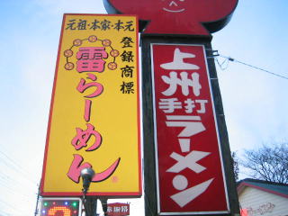 「上州手打ラーメン、元祖・本家・本元 登録商標 雷らーめん」さんです。