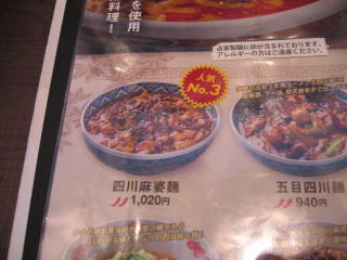 結局、自分の中のNo1の「四川麻婆麺」にしました。