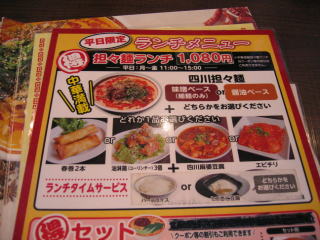 「平日限定ランチメニュー 担々麺ランチ1.080円」も美味しそうです。