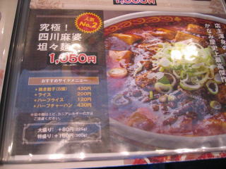人気No1は四川担々麺920円、No2は四川麻婆担々麺1..050円と玄関室内の黒板とは多少異なります。