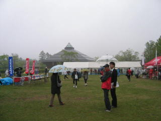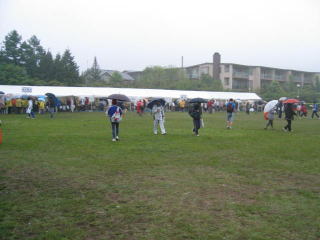 公園、河川敷などの、屋根がないところのマラソン大会は雨が降りと大変です。