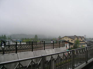 傘を差し、線路の反対側の軽井沢プリンスショッピングプラザへ歩いて向かいます。