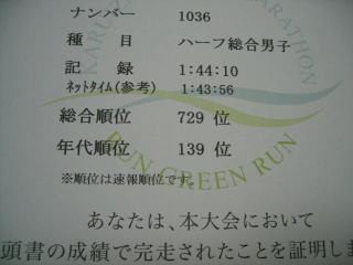 ゴール後は公園内の池に沿った道を通って広場に出て、チップ返却と完走証をもらいます。