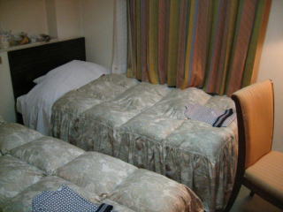 歩いて数分でホテルフロント着、ホテルの人が「30%の料金でお昼まで部屋とお風呂貸しますがどうします?」と言ってきました。