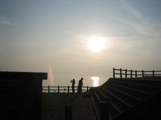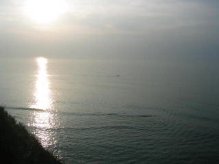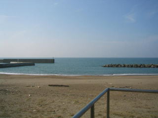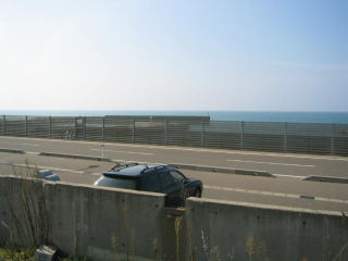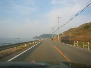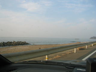 穏やかな海、車の外気温計によれば24℃、暑い位の良い天気です。