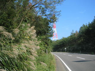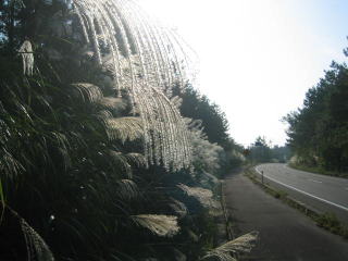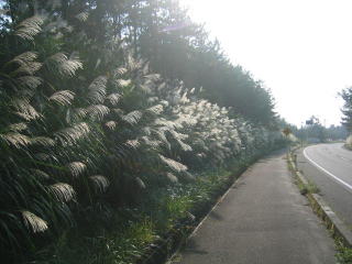 秋のススキの穂の中を柏崎原発に向けて走ります。