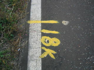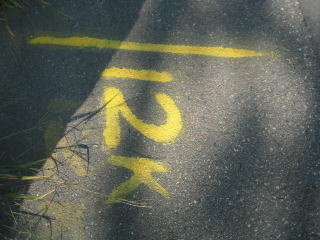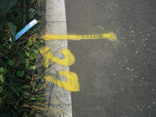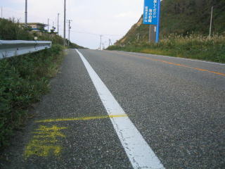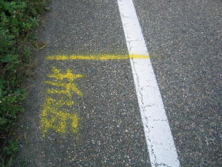 先ほどから出てくる黄色いペイントは絶対にマラソン距離表示に間違いないと確信しました。
