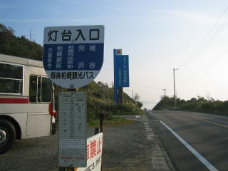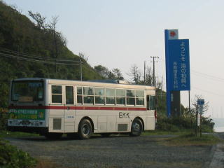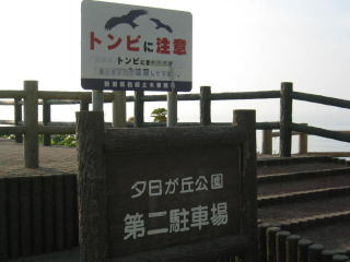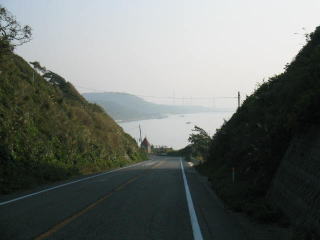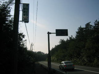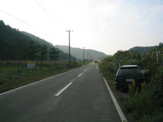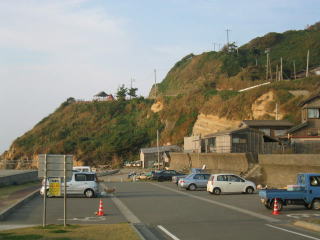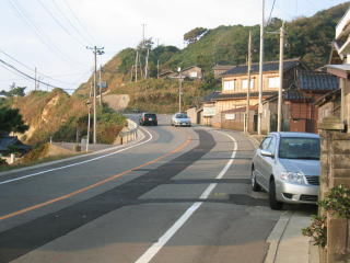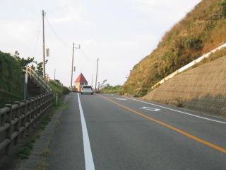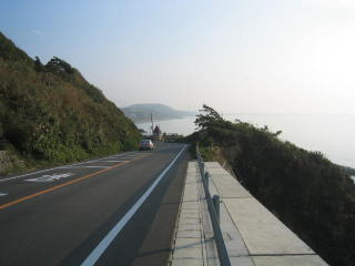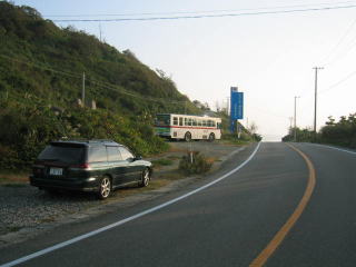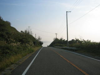 車で観音岬の頂上に到着、その向こうは下りが始まります。