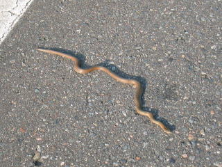 ぎょッ、小さいヘビが干からびて死んでいます。