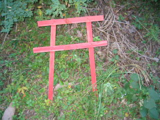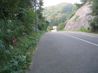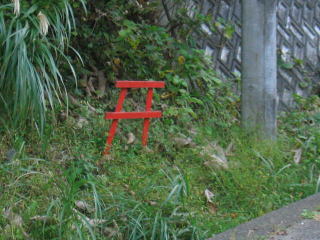 道路わきに高さ1mもない小さな鳥居が2つあって坂は頂上、あとはゆっくり下ります。