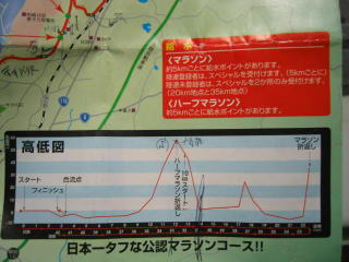 さらに「日本一タフな公認マラソンコース!!」とも書いてあり、給水は約5キロおきにあるようです。