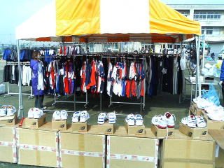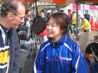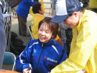 オレンジと白のテントでゲストランナーの「千葉真子」選手がサイン会をしています。