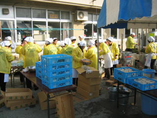 お母さん方が「乾武オフクロ汁」の用意に忙しい。