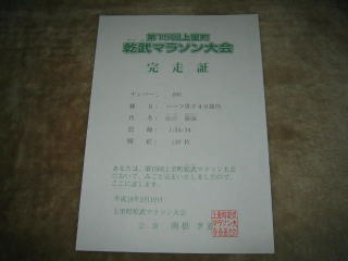 平成18年2月19日、埼玉県上里町の「第15回記念 乾武マラソン大会」に参加しました。