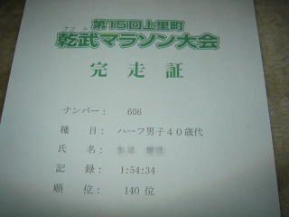 ハーフ(21.0975km)を走って1時間54分34秒後、無事ゴールすることができました、嬉しかったです。