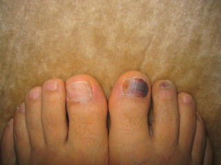 先月1月29日、練習でフルマラソン走りましたら右側の親指、人差し指の爪が少し紫色になりました。