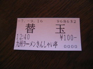 麺は少なめ、すぐになくなりましたので、先に買っておいた替玉食券100円をお願いしますが、現金での注文も可能です。