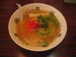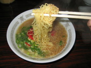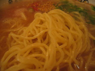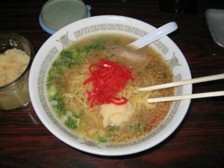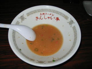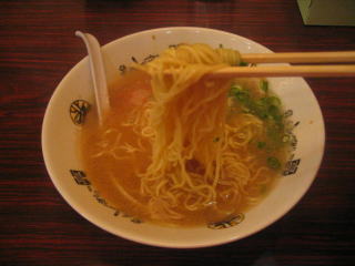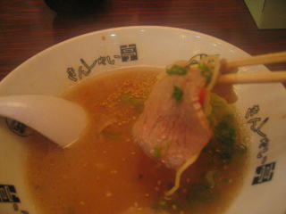 スープはとんこつ正油といった感じでちょっとしょっぱめです。