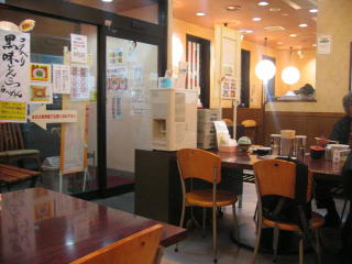 店内は玄関入って左手前にテーブル席、左奥に厨房です。