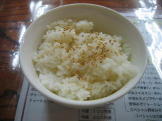 白ごまのかかったミニライスもサービス、これで700円はとてもお得で素晴らしい。