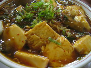 「麻婆餡」は辛くはありませんが熱い、お豆腐は柔らかく絹ごしの様子です。