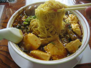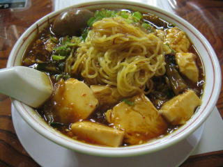 ハッピークーポンで「麻婆麺」800円に大盛&味玉無料です。