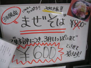3月限定の「まぜそば」800円を600円で提供、迷います。
