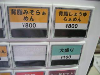 悩んで「背脂しょうゆらぁめん」800円の大盛100円にします。