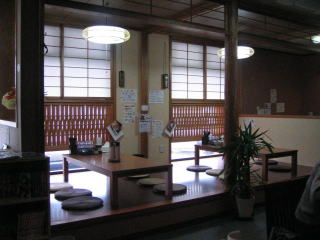 店内は道路側に小上がり席、奥側にテーブル席、右手奥にカウンター席です。