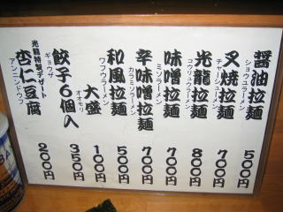 光龍拉麺800円大盛100円で900円です。