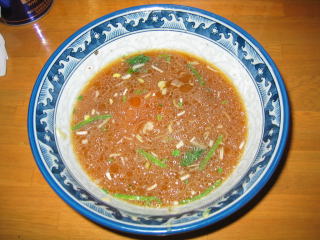 スープは魚介系の、甘ジョッパイ不思議な味です。