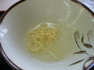 麺のどんぶりの底にはザルがなく、水も少したまっています。
