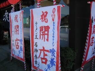 「ラーメン王」さんからも花輪が来ており、「とんこつしょうゆラーメン喰拳」と書いてあります。