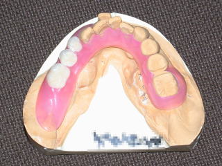 平成28年11月15日 下顎のみクラスプレスデンチャー装着しました。 旧義歯、上下顎とも金属ばね使用です。 今回は下顎隆起(外骨症)が大きく、のみピタッとしないので、下顎のみクラスプレスデンチャー作成、装着です。 大きな下顎隆起(外骨)が両側にあります。 薄くピタッと適合し、装着感もほとんどないとのことです。