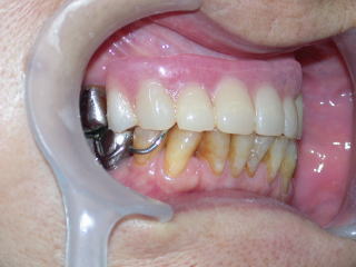 以前の義歯は上7番に遠心側からクラスプをかけていたので、床が大きく舌感に難がありました。