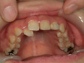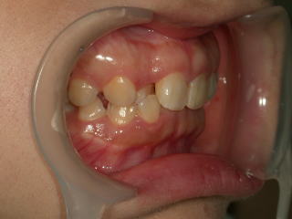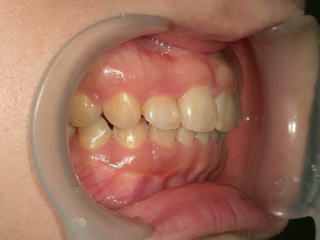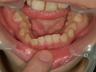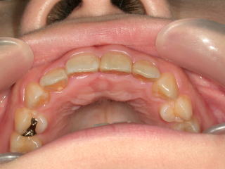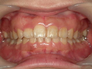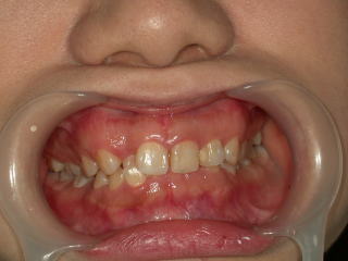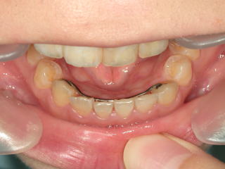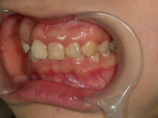 良く観察しますと、噛み合わせが深く下の前歯が見えません(過蓋咬合)。