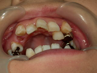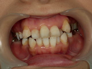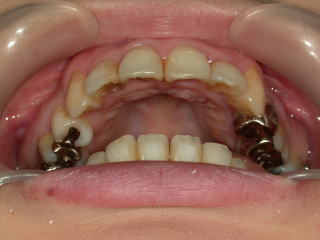 叢生(そうせい)という状態です。いわゆる乱杭歯といった状態で、一部反対咬合があります。