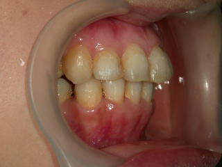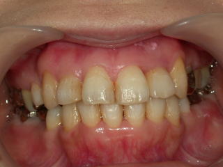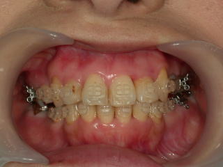 写真はブラケットをつける前の状態で、歯の表面処理がしてあるためザラザラして見えます。