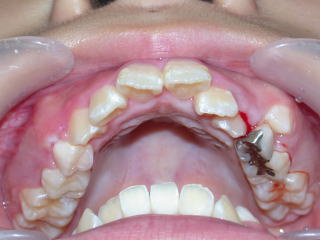 平成26年7月29日、左上5番が180度捻転して萌出してきました。