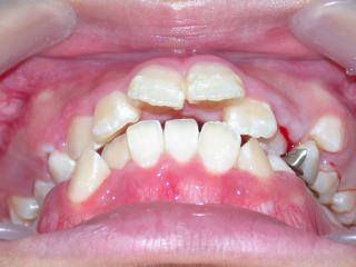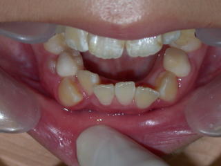 まだ、混合歯列ですが第一小臼歯抜歯予定、了解を得てから始めます。