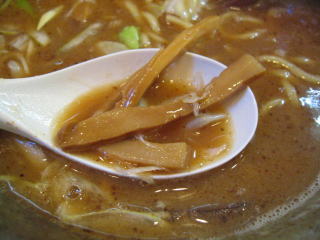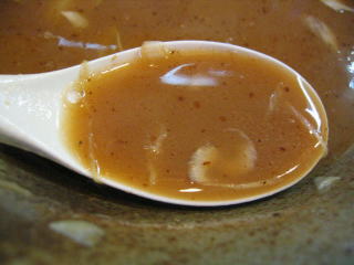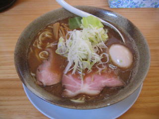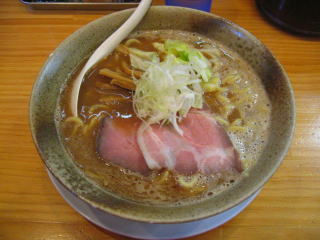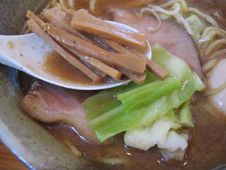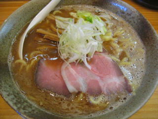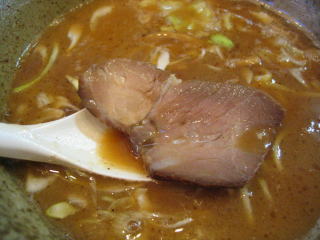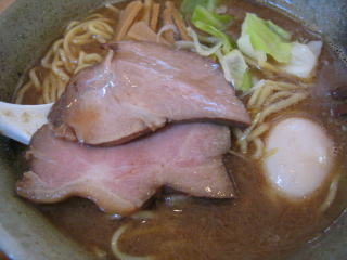 最近の流行なのか、ピンクのローストビーフの様なチャーシュー2枚が目を引きます。
